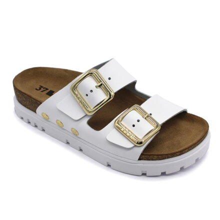 - Výplň stielky: korok. Vysoký komfort nosenia má vďaka anatomicky tvarovanej koženej vložke - podporujúci prirodzený tvar chodidla / pre osoby s plochými nohami - na podporu priečnej a pozdĺžnej klenby/.